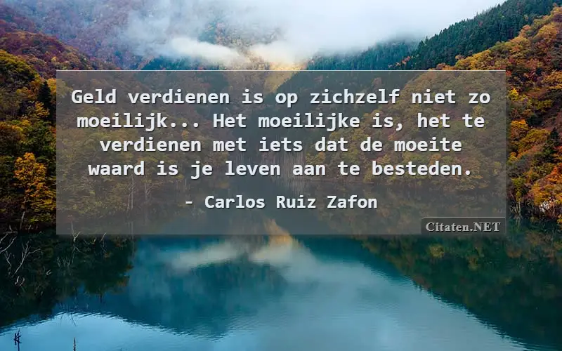 Geld verdienen is op zichzelf niet zo moeilijk... Het moeilijke is, het te verdienen met iets dat de moeite waard is je leven aan te besteden. van : Carlos Ruiz Zafon