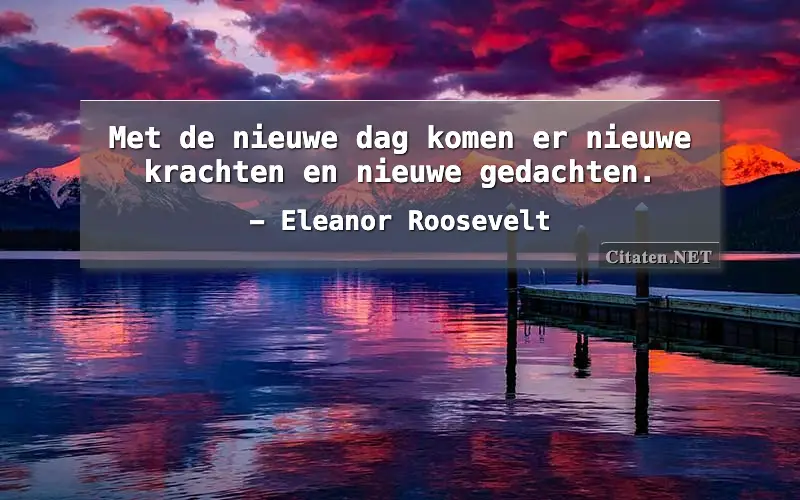 • Eleanor Roosevelt Met de nieuwe dag komen er nieuwe krachten en nieuwe gedachten.