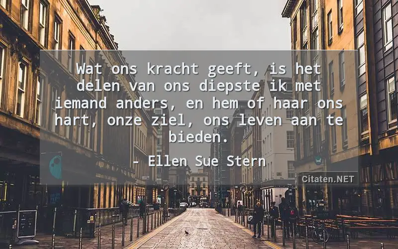 Wat ons kracht geeft, is het delen van ons diepste ik met iemand anders, en hem of haar ons hart, onze ziel, ons leven aan te bieden. van : Ellen Sue Stern