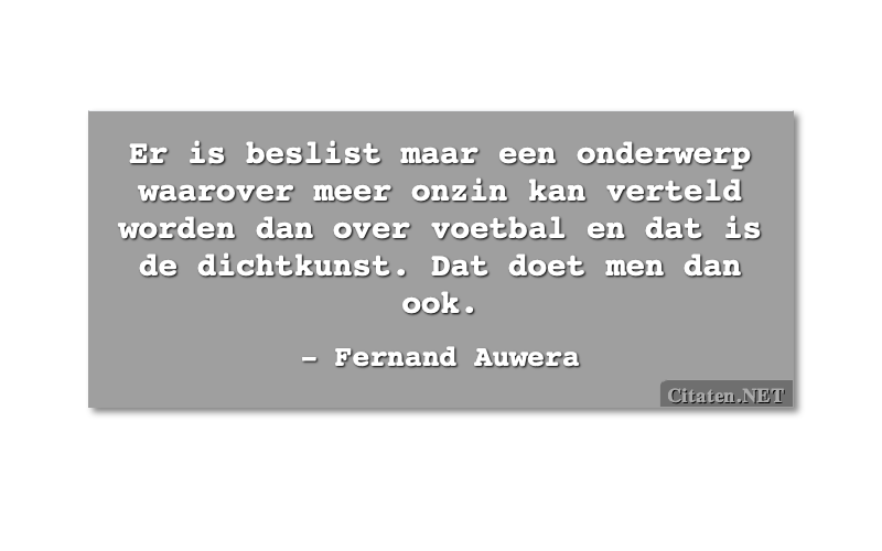 Er is beslist maar een onderwerp waarover meer onzin kan verteld worden dan over voetbal en dat is de dichtkunst. Dat doet men dan ook. van : Fernand Auwera