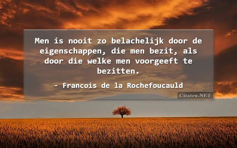 Men is nooit zo belachelijk door de eigenschappen, die men bezit, als door die welke men voorgeeft te bezitten. van : Francois de la Rochefoucauld