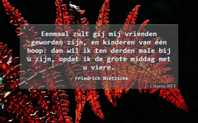 Eenmaal zult gij mij vrienden geworden zijn, en kinderen van één hoop: dan wil ik ten derden male bij u zijn, opdat ik de grote middag met u viere. van : Friedrich Nietzsche