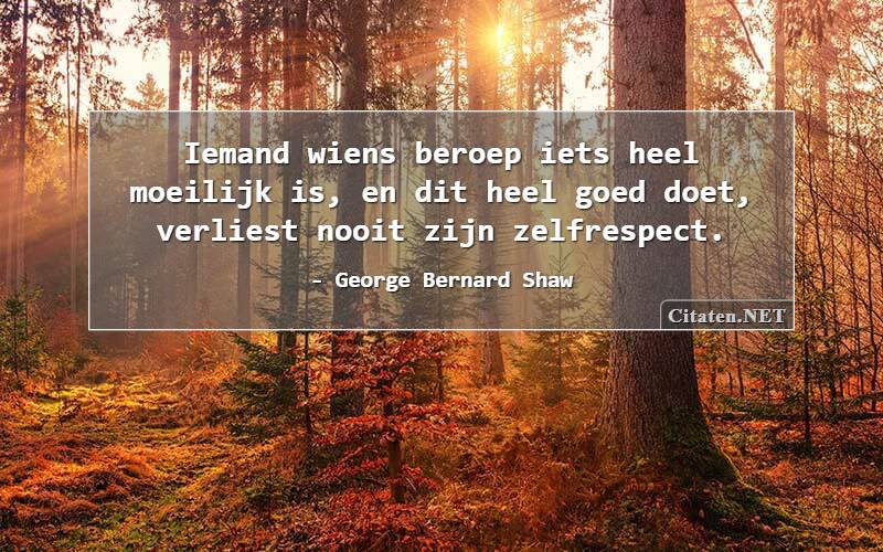 Iemand wiens beroep iets heel moeilijk is, en dit heel goed doet, verliest nooit zijn zelfrespect. van : George Bernard Shaw