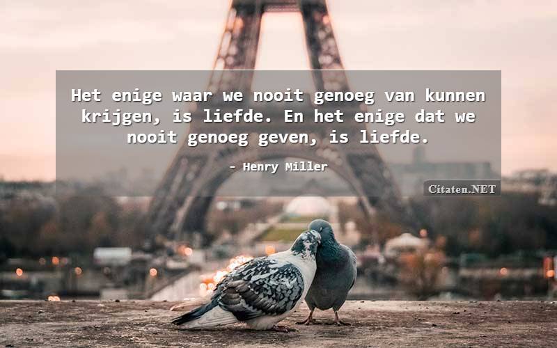 Het enige waar we nooit genoeg van kunnen krijgen, is liefde. En het enige dat we nooit genoeg geven, is liefde. van : Henry Miller