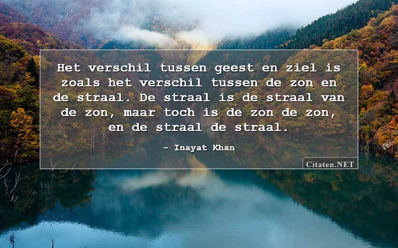 Het verschil tussen geest en ziel is zoals het verschil tussen de zon en de straal. De straal is de straal van de zon, maar toch is de zon de zon, en de straal de straal. van : Inayat Khan