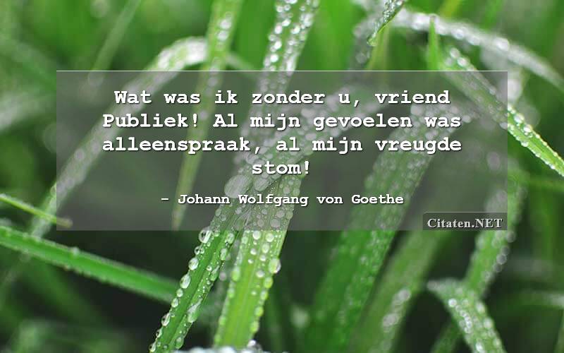 Wat was ik zonder u, vriend Publiek! Al mijn gevoelen was alleenspraak, al mijn vreugde stom! van : Johann Wolfgang von Goethe