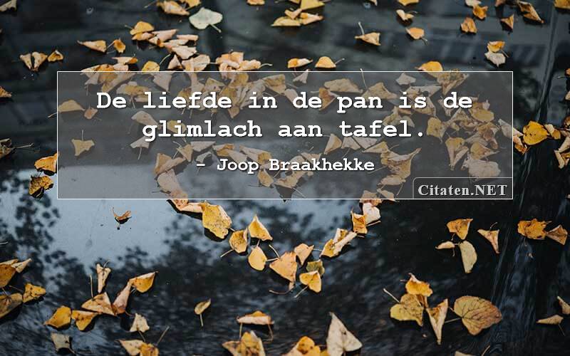 De liefde in de pan is de glimlach aan tafel. van : Joop Braakhekke