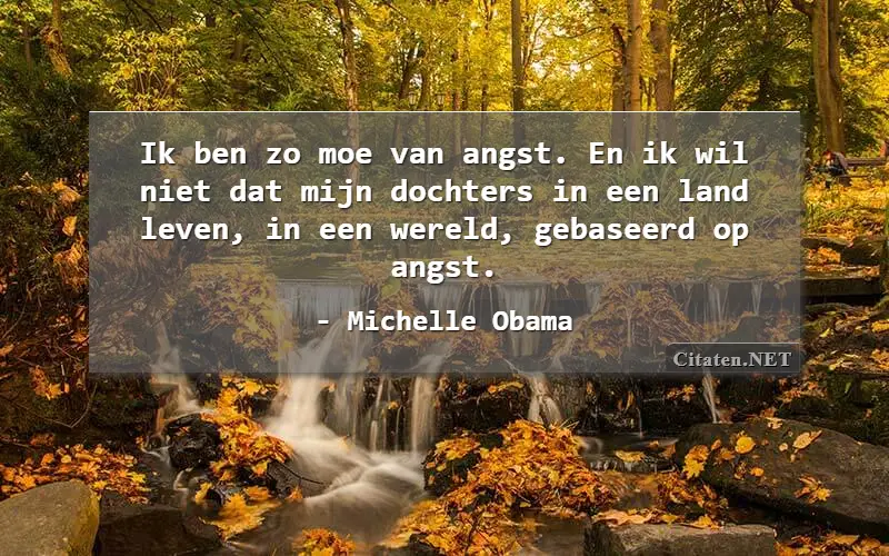 Ik ben zo moe van angst. En ik wil niet dat mijn dochters in een land leven, in een wereld, gebaseerd op angst. van : Michelle Obama
