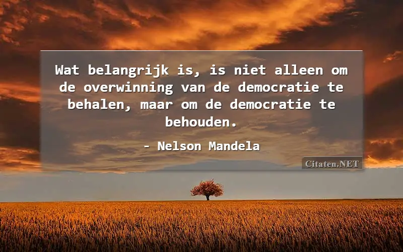 Wat belangrijk is, is niet alleen om de overwinning van de democratie te behalen, maar om de democratie te behouden. van : Nelson Mandela