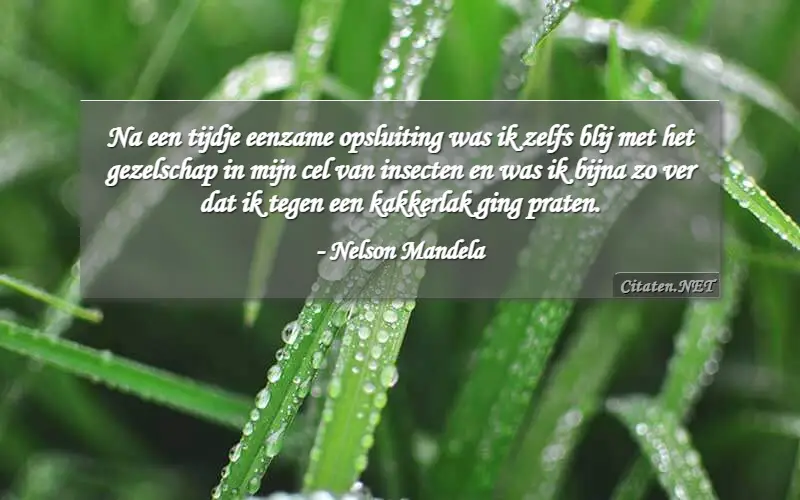 Na een tijdje eenzame opsluiting was ik zelfs blij met het gezelschap in mijn cel van insecten en was ik bijna zo ver dat ik tegen een kakkerlak ging praten. van : Nelson Mandela