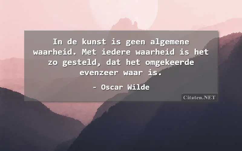 In de kunst is geen algemene waarheid. Met iedere waarheid is het zo gesteld, dat het omgekeerde evenzeer waar is. van : Oscar Wilde