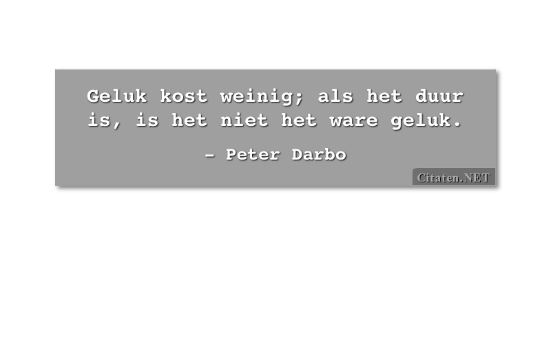 Geluk kost weinig; als het duur is, is het niet het ware geluk. van : Peter Darbo