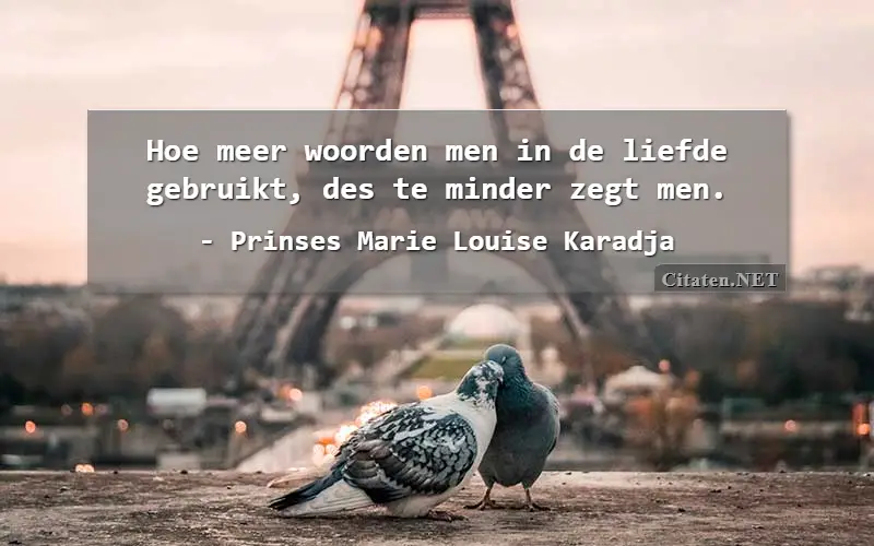 Hoe meer woorden men in de liefde gebruikt, des te minder zegt men. van : Prinses Marie Louise Karadja