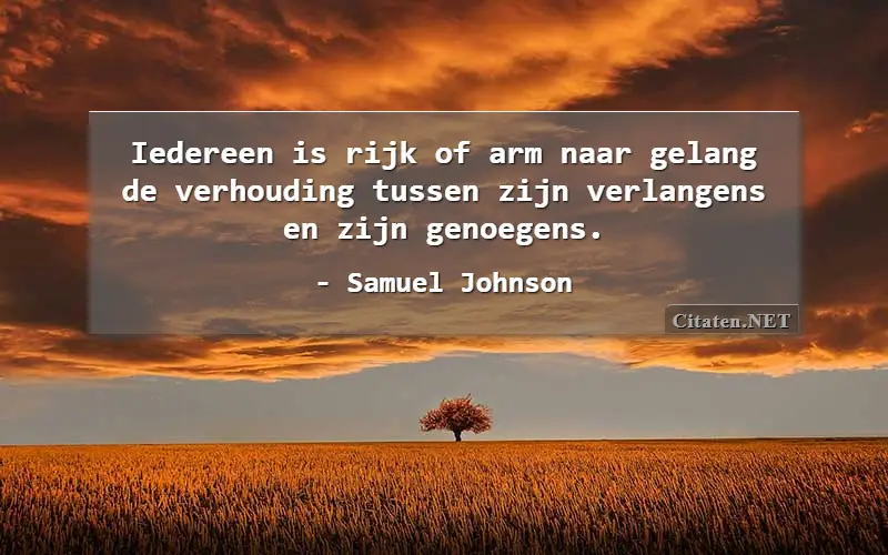 Iedereen is rijk of arm naar gelang de verhouding tussen zijn verlangens en zijn genoegens. van : Samuel Johnson